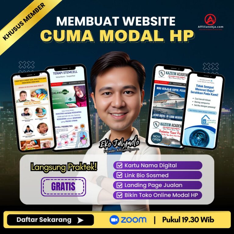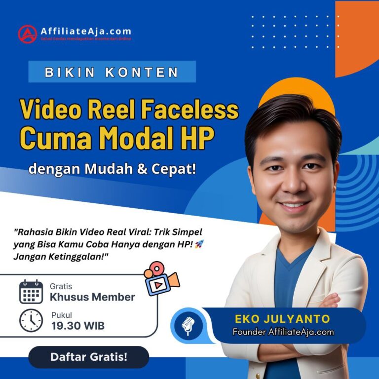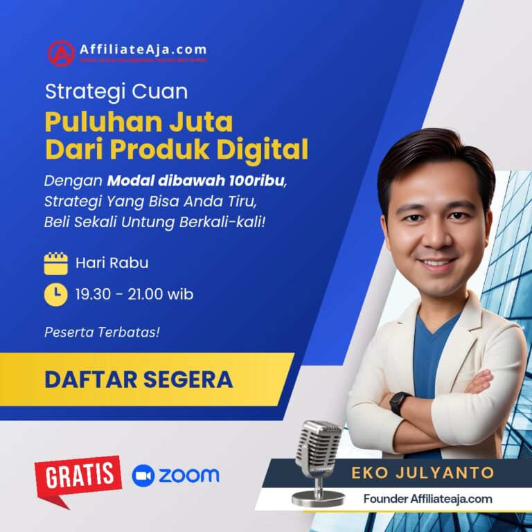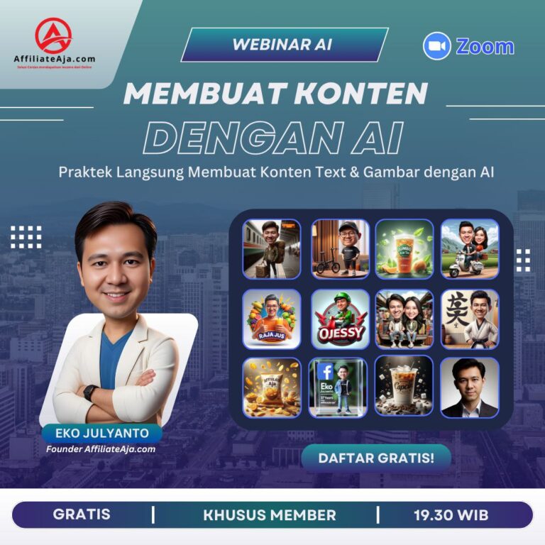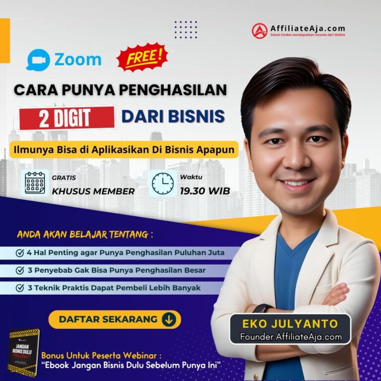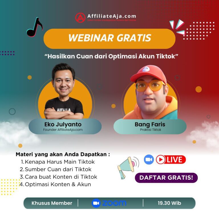 Selain itu, sebagai bagian dari komitmen kami untuk mendukung pembelajaran Anda, AffiliateAja.com juga menyediakan webinar gratis edukasi setiap Senin – Kamis via LIVE Zoom.