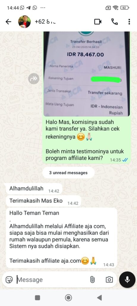Tidak ada hasil pasti karena setiap orang punya effort berbeda. Tapi ratusan member sudah berhasil, dari yang dapat 100 ribu pertama sampai yang tembus jutaan per minggu.