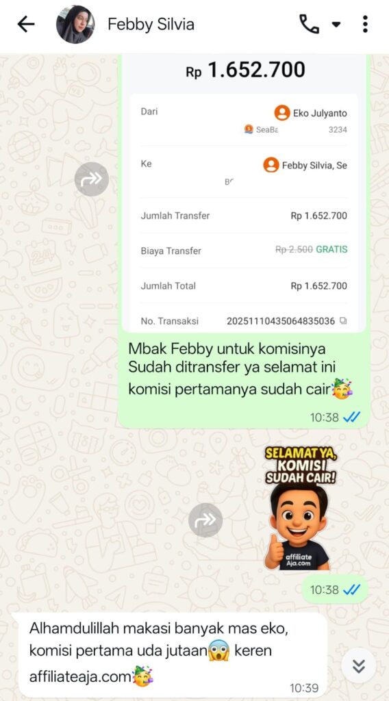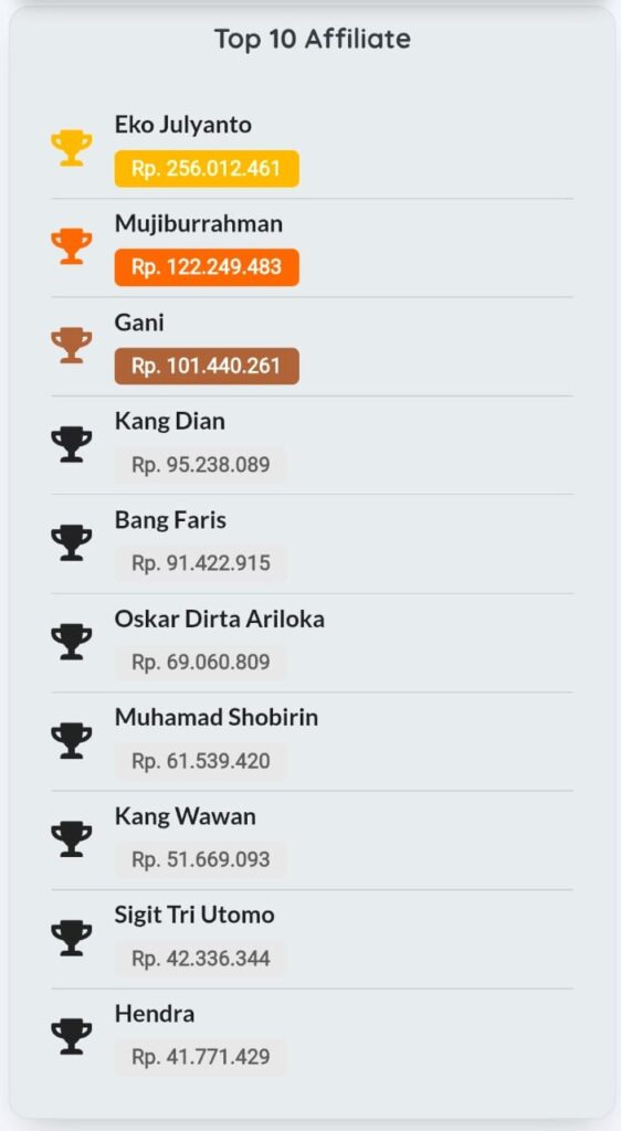 Tidak ada hasil pasti karena setiap orang punya effort berbeda. Tapi ratusan member sudah berhasil, dari yang dapat 100 ribu pertama sampai yang tembus jutaan per minggu.